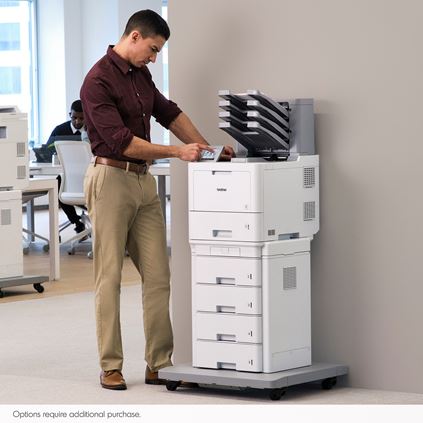 For growing businesses, the HL-L9430CDN offers scalable paper handling with a 520-sheet capacity paper tray and a 100-sheet multipurpose tray for envelopes and custom media. If your office requires even more capacity, you can expand to a maximum of 2,700 sheets by adding optional trays or configuring the printer as a floor-standing unit with the tower tray option, which includes four 520-sheet trays.