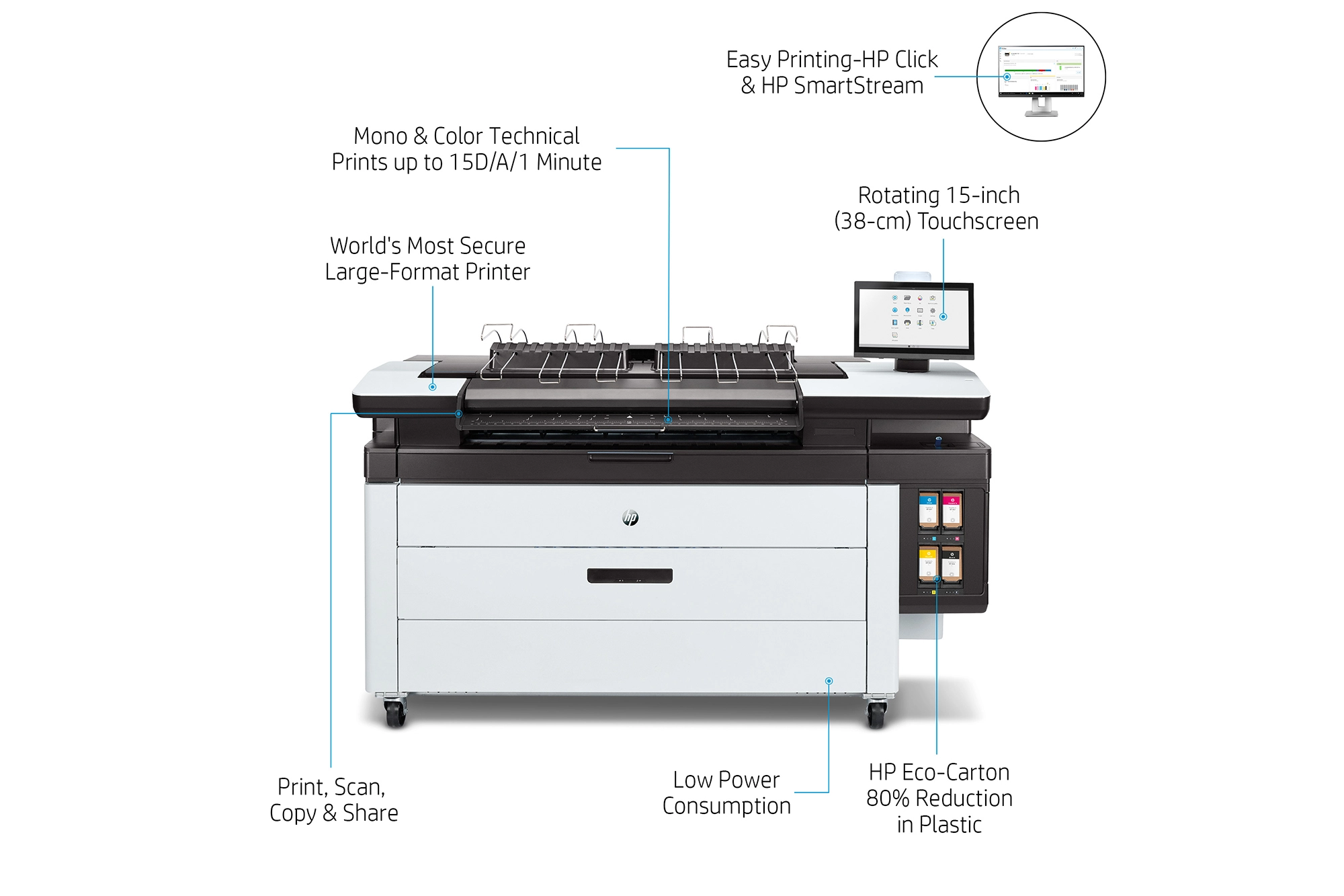 HP SmartStream software (optional), HP Click printing software, HP PageWide XL print drivers (PDF, HP-GL/2, and PCL3), Apple AirPrint |