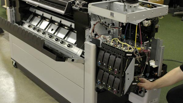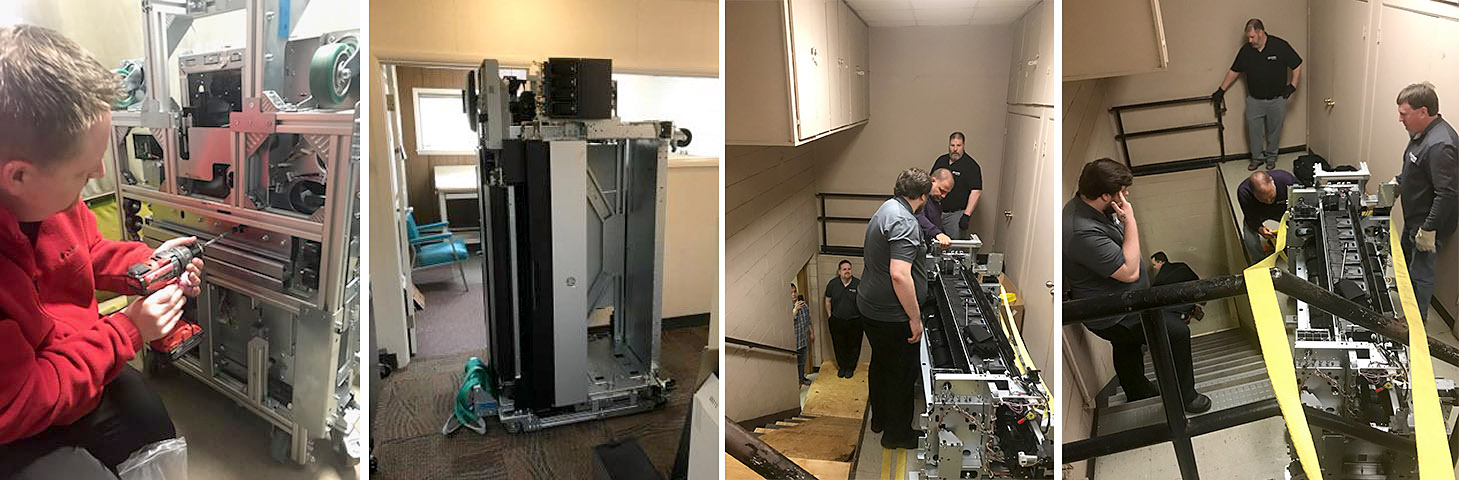 We have some great stories of moving these 1,000+ pound printers into offices. Sometimes taking them apart and putting them back together. It sometimes involves building custom ramps or removing all the side panels to squeeze into elevators and stairs. We get the job done. Ask your technician for his best story.