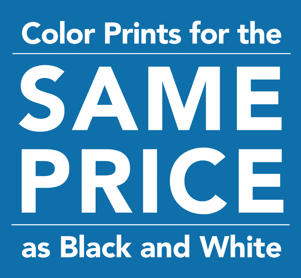 • We print in Color for same cost as Black and White