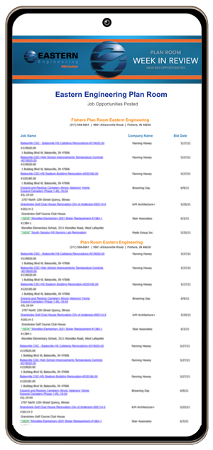 We provide a weekly email listing all the active projects in our plan rooms.